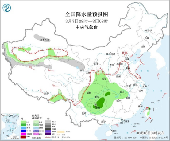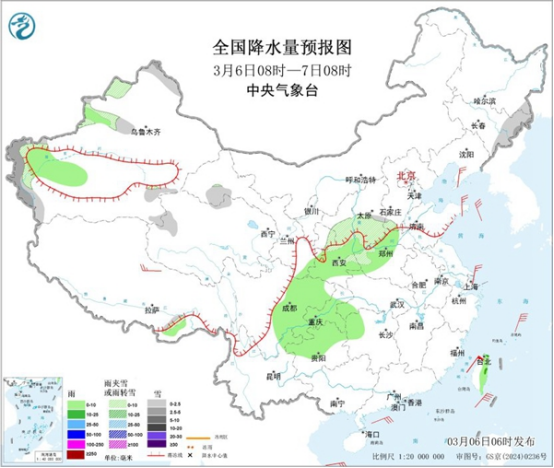 今天(3月6日),北方降水范圍縮減,但山西、陜西、河南等地仍有雨雪天氣,同時,西南地區(qū)陰雨發(fā)展增多,公眾外出需小心慢行,謹防道路濕滑。周末,北方大部地區(qū)將陸續(xù)轉(zhuǎn)晴,開啟回暖模式,華北多地最高氣溫將重回兩位數(shù),近期明顯偏暖的西北地區(qū)東部會暖上加暖,多地暖意堪比常年清明時節(jié)。