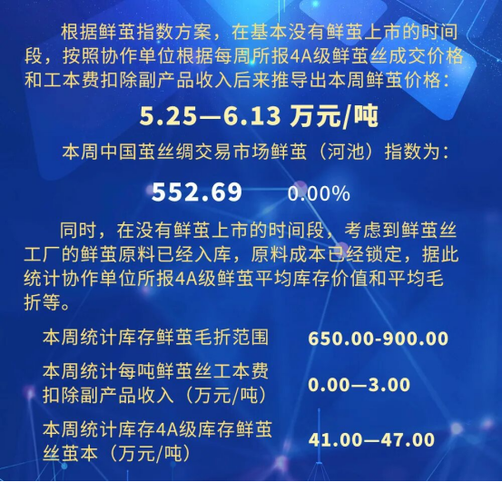 根據(jù)本周蠶繭報(bào)價(jià)按照指數(shù)方案形成的基準(zhǔn)品價(jià)格區(qū)間