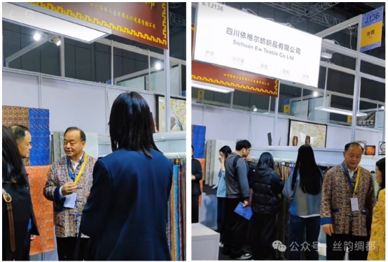 展會現(xiàn)場氛圍熱烈,南充三家企業(yè)各展所長、亮點突出。作為“南充蜀錦織造技藝”非遺傳承載體,四川依格爾紡織品有限公司以蜀錦產(chǎn)品為核心,展出多款兼具傳統(tǒng)韻味與現(xiàn)代美感的蜀錦面料,溫潤色澤與精美紋樣吸引眾多參會者駐足咨詢。其產(chǎn)品融合傳統(tǒng)經(jīng)錦與現(xiàn)代緯錦工藝,既保留千年蜀錦典雅風(fēng)骨,又貼合當(dāng)下消費需求,工作人員現(xiàn)場講解織造工藝,讓參會者感受“萬錦之母”的魅力,部分采購商當(dāng)場洽談合作細(xì)節(jié)。