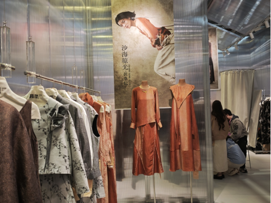 在現(xiàn)場(chǎng)可以看到,展會(huì)第一次特別設(shè)立的“國(guó)風(fēng)服飾”專區(qū)與融合國(guó)風(fēng)創(chuàng)意的“設(shè)計(jì)力量”專區(qū),成為整個(gè)展會(huì)中人流量最大的區(qū)域。而與大眾理解中的復(fù)刻傳統(tǒng)不同,展會(huì)中的國(guó)風(fēng)品類呈現(xiàn)出超乎想象的多元形態(tài)。