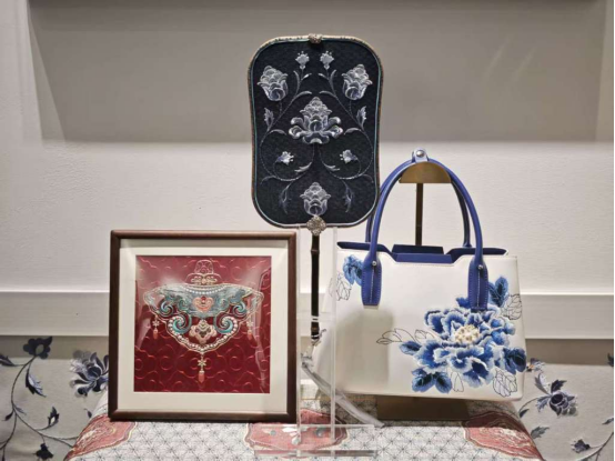 在工藝創(chuàng)新上,刺繡的應(yīng)用場(chǎng)景在不斷拓展。比如在真絲綃(也稱生絲絹)上刺繡,因其材質(zhì)通透,可用于制作團(tuán)扇、空間屏風(fēng)等軟裝;在羊毛類產(chǎn)品上刺繡,因?yàn)榭朔蛎彳浥c彈性帶來(lái)的皺褶問(wèn)題而獲得獨(dú)特青睞。
