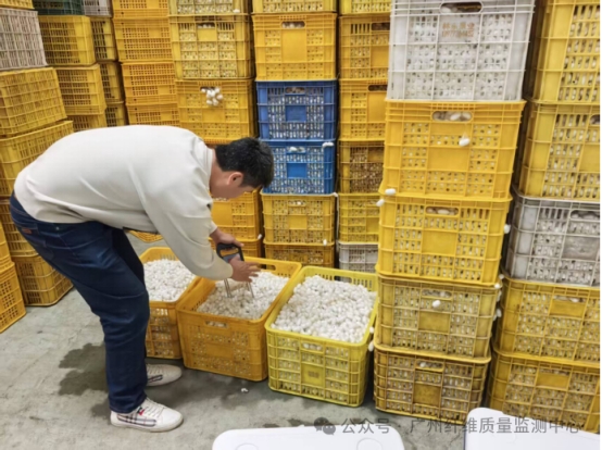 調(diào)研期間,技術(shù)人員直奔標(biāo)準(zhǔn)化鮮繭倉儲冷庫一線,利用便攜式水分檢測儀,對成筐堆放的鮮繭開展現(xiàn)場抽樣檢測,嚴(yán)格核查含水率、好蛹率等關(guān)鍵質(zhì)量指標(biāo)。同時,細(xì)致查驗(yàn)鮮繭色澤、勻凈度及繭層厚度,嚴(yán)格對照《桑蠶鮮繭》國家標(biāo)準(zhǔn),逐項(xiàng)記錄檢測數(shù)據(jù),確保調(diào)研結(jié)果真實(shí)、精準(zhǔn)、規(guī)范。
