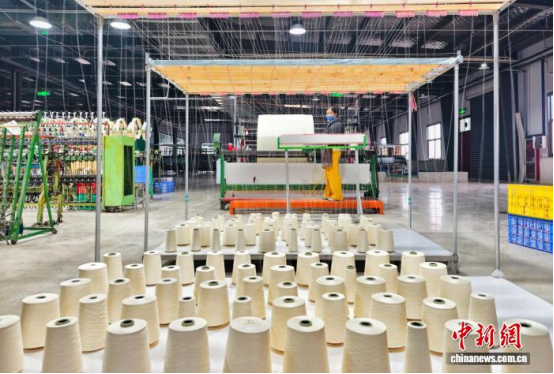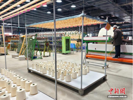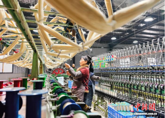 圖為工人在絡(luò)絲