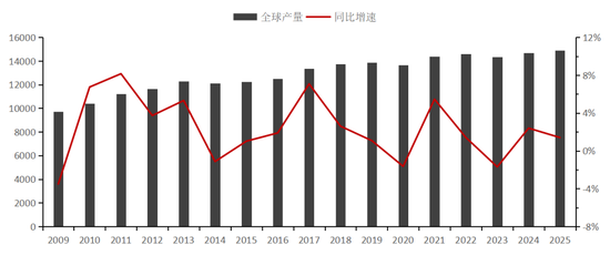 2014年10月至2016年5月期間,全球發(fā)生了強厄爾尼諾氣候,2014年全球天然橡膠產(chǎn)量環(huán)比下降1.13%。在2014年產(chǎn)量基數(shù)偏低影響下,2015年全球天然橡膠產(chǎn)量環(huán)比小幅回升。
