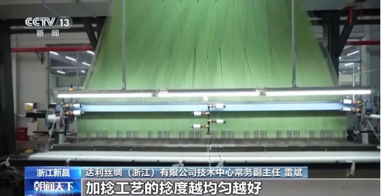 達(dá)利絲綢(浙江)有限公司技術(shù)中心常務(wù)副主任 雷斌:最關(guān)鍵的一道工藝是加捻工序,加捻工藝的捻度越均勻越好,相當(dāng)于回彈效果越好。