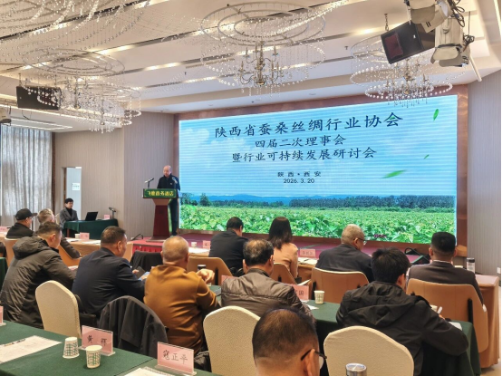 3月20日下午,陜西省蠶桑絲綢行業(yè)協(xié)會四屆二次理事會暨行業(yè)可持續(xù)發(fā)展研討會在西安市召開。