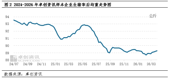 導(dǎo)致2026年3月份國內(nèi)白條豬肉價(jià)格降至歷史低位主要有兩方面原因。第一,上游養(yǎng)殖端積極出欄,原料供應(yīng)充裕,白條豬肉增量明顯。從圖2看到,因?qū)笫锌礉q預(yù)期不足,2025年12月份開始養(yǎng)殖端積極降重出欄,至2026年2月份國內(nèi)生豬宰后均重已降至較低水平;春節(jié)后前期壓欄的大豬陸續(xù)釋放,且隨著氣溫升高,大規(guī)格白條銷售情況欠佳,養(yǎng)殖端積極出欄大豬,支撐宰后均重微幅抬升。月內(nèi)屠宰企業(yè)分割比例增多,但整體入庫量有限,白條豬肉供應(yīng)依舊充裕。
