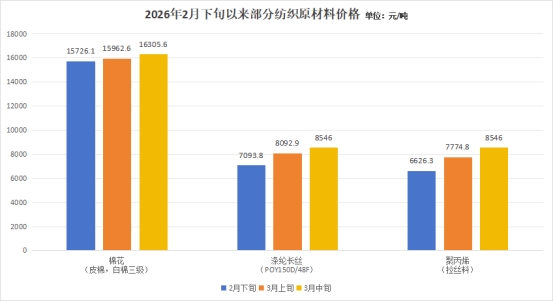 (二)2026年2月下旬以來部分紡織原材料價格走勢
