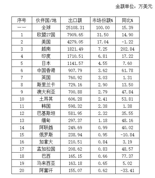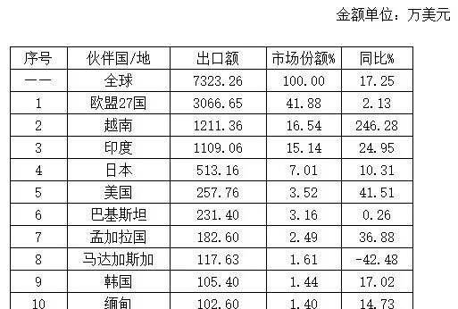 出口增長核心受三大因素支撐:歐盟作為第一大出口市場,需求保持穩(wěn)定;印度、越南等市場發(fā)揮重要“壓艙石” 作用;美國關(guān)稅政策調(diào)整帶來短期窗口期效應(yīng),成為出口增長的重要支撐。