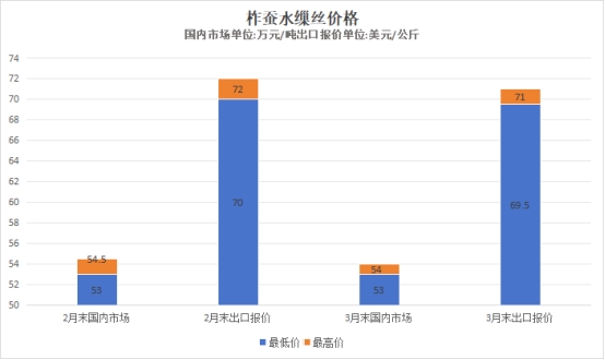 圖3:柞蠶水繅絲價格(2月末-3月末)數(shù)據(jù)來源:中國繭絲綢交易市場統(tǒng)計