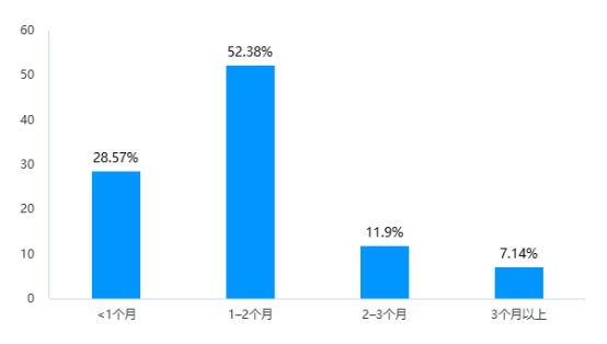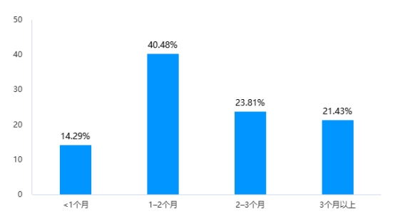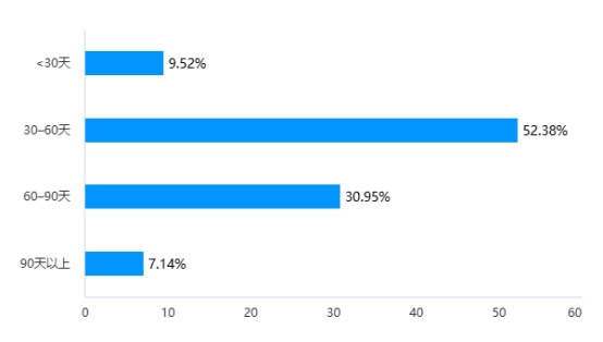 需關(guān)注區(qū)間(3個月以上):9家,占比21.43%,高于行業(yè)通用上限