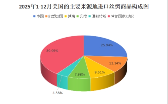 (圖15:2025年1-12月美國的主要來源地進(jìn)口絲綢商品構(gòu)成數(shù)據(jù)來源:美國商務(wù)部)