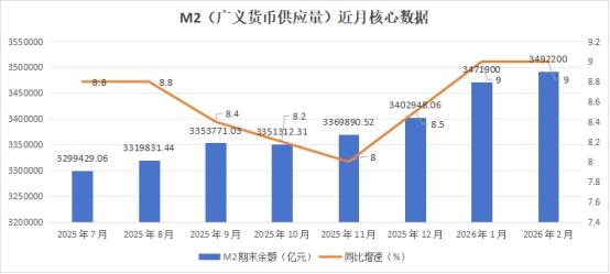 2026年1-2月M2同比增速均為9.0%,較2025年年末進(jìn)一步提升,廣義貨幣供應(yīng)量充足,市場流動性寬松,為企業(yè)提供了良好的資金環(huán)境。