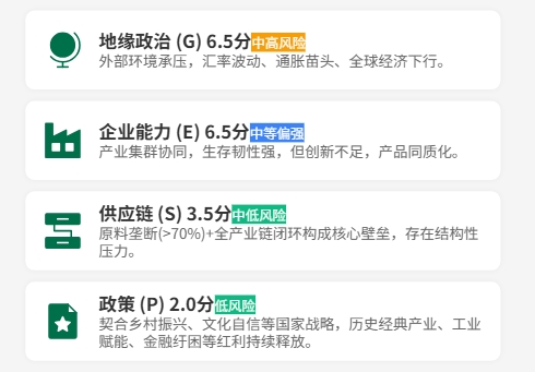 核心特征:行業(yè)面臨顯著的外部壓力。國際匯率波動、歐美走高的通貨膨脹率,以及全球經(jīng)濟(jì)下行的宏觀趨勢,共同構(gòu)成了中高風(fēng)險環(huán)境。這些因素直接影響著行業(yè)的出口貿(mào)易和成本控制。