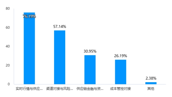 實時行情與供應(yīng)鏈預(yù)警是企業(yè)最迫切需求,在所有專項支持選項中,達(dá)到76.19%,顯著高于其他選項。