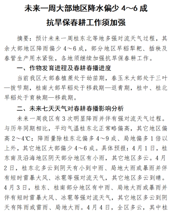 廣西:未來一周大部降水偏少4~6成 抗旱保春耕工作須加強(qiáng)