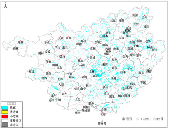 廣西未來七天水稻春播氣象適宜性分布圖