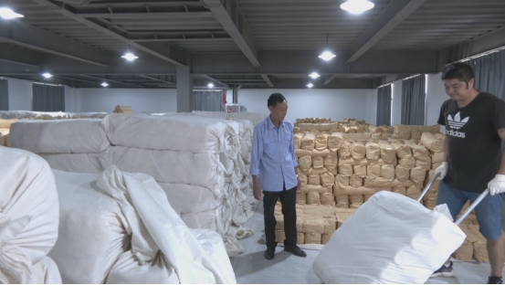 大洋繭絲綢公司員工進(jìn)行蠶繭分揀、打包