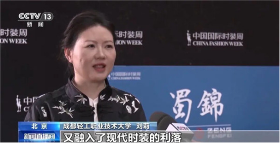 成都輕工職業(yè)技術(shù)大學(xué) 劉莉:我們?cè)谠O(shè)計(jì)上既保留了傳統(tǒng)蜀錦的精致,又融入了現(xiàn)代時(shí)裝的利落,讓蜀錦符號(hào)符合當(dāng)代審美,讓傳統(tǒng)與時(shí)尚在色彩、紋樣、廓形上完美融合,讓蜀錦真正走進(jìn)日常消費(fèi)。