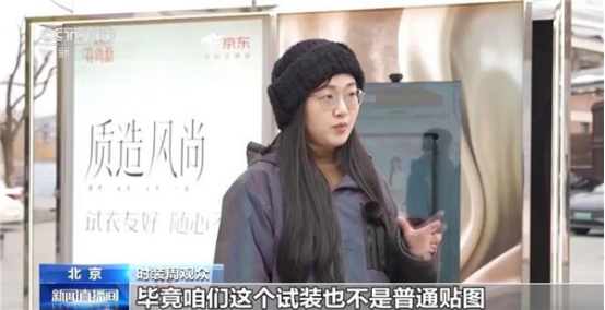 時(shí)裝周觀眾:我覺得還挺驚奇的,這回有了AI試裝,我覺得一下就特別明顯了,畢竟這個(gè)試裝也不是普通貼圖,它是能連衣服的垂墜感都給模擬出來的,覺得這就一目了然了。