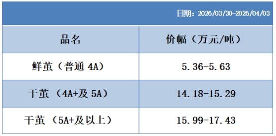 干繭方面,當(dāng)前處于傳統(tǒng)與新繭季銜接階段,各等級干繭成交較為雜亂,企業(yè)需求分化明顯。本周干繭價格指數(shù)止跌微漲。