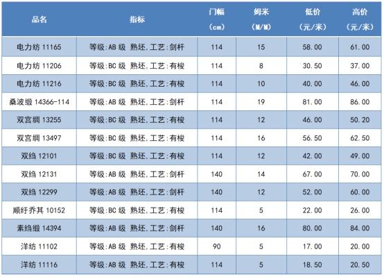 本周高品位生絲協(xié)作單位成交價格區(qū)間