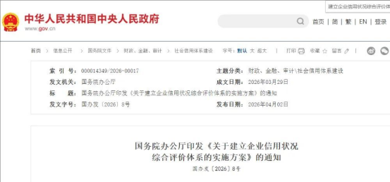 信用是企業(yè)重要的無形資產(chǎn)。近日,國務(wù)院辦公廳印發(fā)《關(guān)于建立企業(yè)信用狀況綜合評價體系的實施方案》?!秾嵤┓桨浮吠ㄟ^系統(tǒng)設(shè)計企業(yè)信用狀況綜合評價體系的制度框架和運行機制,以12條務(wù)實舉措糾治重復(fù)評價、標準割裂、權(quán)益保障不足等問題,推動企業(yè)信用評價從“自行探索”邁向“統(tǒng)一規(guī)范”新階段,為高質(zhì)量發(fā)展持續(xù)注入信用動能。