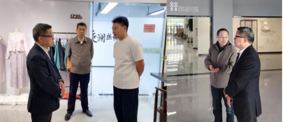 調(diào)研組一行率先駐足南潯舊館長(zhǎng)三角絲綢文化產(chǎn)業(yè)園,沉浸式探訪(fǎng)園區(qū)文化產(chǎn)業(yè)空間,步履所至,皆是絲綢文化的千年底蘊(yùn)與創(chuàng)新活力。他們走訪(fǎng)園區(qū)商戶(hù),與青年創(chuàng)業(yè)者促膝交談,傾聽(tīng)青創(chuàng)心聲,共探發(fā)展路徑。對(duì)產(chǎn)業(yè)園深度聯(lián)動(dòng)高校、深耕絲綢文化根脈、以數(shù)智之力激活傳統(tǒng)產(chǎn)業(yè)生命力的實(shí)踐,留下深刻印象。更欣慰于歷史經(jīng)典絲綢產(chǎn)業(yè)薪火相傳,堅(jiān)信這份承載著東方美學(xué)的產(chǎn)業(yè),必將在新時(shí)代綻放更璀璨的光彩。