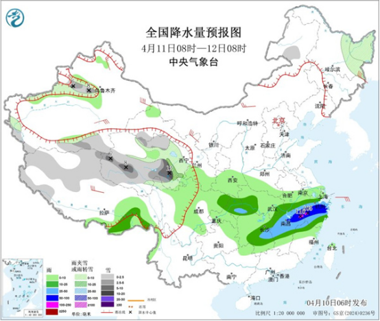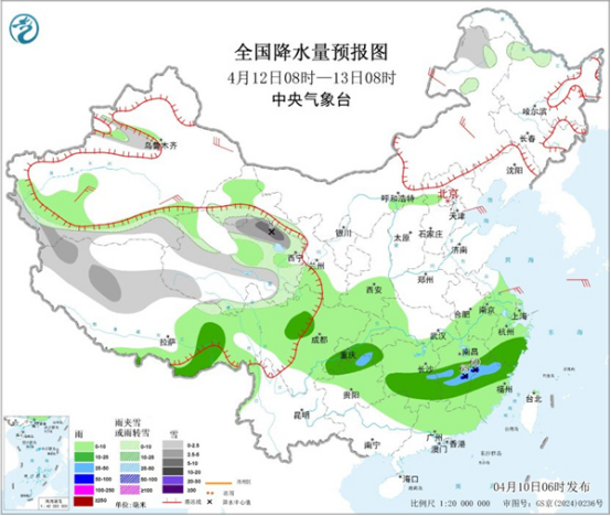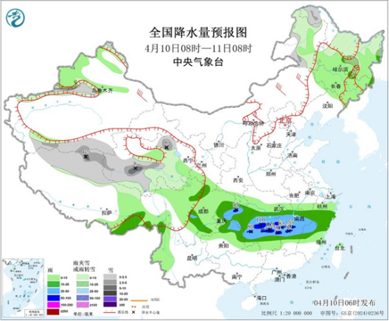 今明天(4月10日至11日),江南等地部分地區(qū)仍是降雨連連,湖南、江西等地部分地區(qū)有暴雨或大暴雨,需防范連續(xù)降雨和局地較強(qiáng)降雨可能引發(fā)的次生災(zāi)害。隨著陰雨增多,江南一帶今天氣溫下降,華南炎熱天氣仍將持續(xù),部分地區(qū)有高溫天氣,北方氣溫多起伏,公眾請(qǐng)適時(shí)調(diào)整著裝。