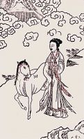 據(jù)說(shuō)在嫘祖生活的時(shí)代之前是沒(méi)有蠶的,是嫘祖的白馬因?yàn)橥龍D嫘祖嫁給它,而被嫘祖的父親一箭射死并剝下馬皮。馬皮裹起嫘祖最好的朋友雪花而去,沒(méi)幾天,縮小為丸,便是我們現(xiàn)在看到的蠶繭。嫘祖將蠶繭采下,經(jīng)過(guò)一番加工之后,制成了絲綢。