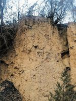 上圖為夏縣西陰文化遺址紀(jì)念碑,下圖為發(fā)現(xiàn)蠶繭化石的灰坑。