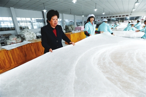 在《蠶絲被》國(guó)家標(biāo)準(zhǔn)起草單位、蘇州慈云蠶絲制品有限公司的車間里,她告訴記者,四人拉制的蠶絲被“全幅平面、縱橫旋轉(zhuǎn)、千層網(wǎng)疊、絲絲入扣”,全幅拉扯,縱橫交叉,上下包邊,四邊針絎,整條被子成型后,厚薄均勻,平坦、舒展、柔軟、蓬松、四角方正、四邊充實(shí)、差異率不大于10%,完全達(dá)到《蠶絲被》國(guó)家標(biāo)準(zhǔn)中優(yōu)等品的要求。