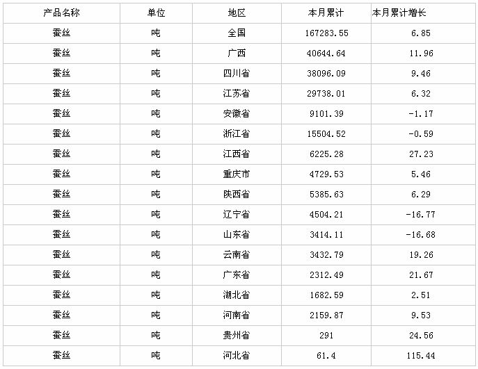 中商產(chǎn)業(yè)研究院數(shù)據(jù)顯示:2014年1-12月生產(chǎn)蠶絲16.73 萬(wàn)噸,同比增長(zhǎng)6.85 %。