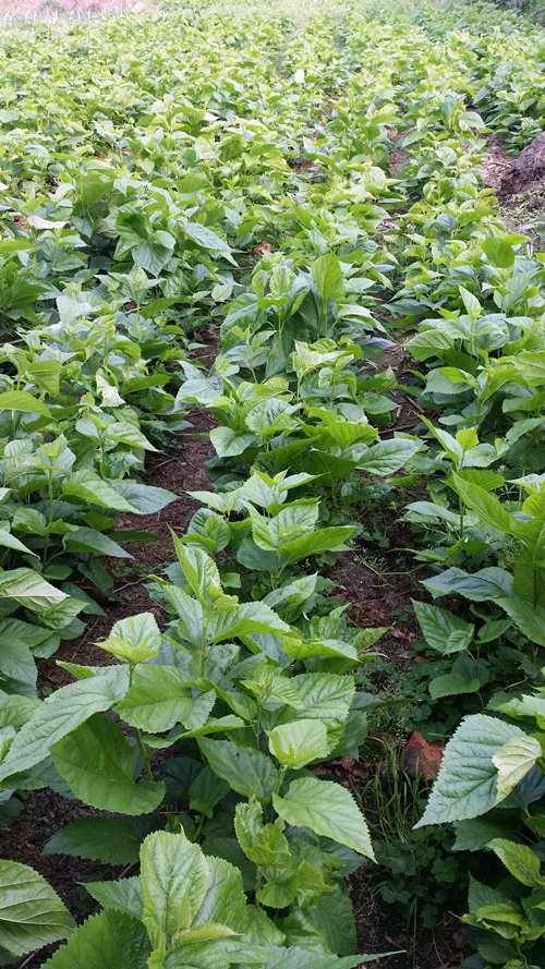 2015年由于立春早(2月4日),過了正月十五就到了農歷的驚蟄節(jié)氣,氣候逐漸轉暖。進入3月以來天氣溫暖,雨水充足,十分有利于桑樹生長。3月17日,筆者下鄉(xiāng)看到,象州縣寺村鎮(zhèn)、中平鎮(zhèn)的桑樹生長良好,已長出新枝,高達30-40cm,已有4片大葉,3片小葉,但是,農民朋友還沒有施肥培土,葉片表現出綠中帶黃,養(yǎng)料明顯不足。