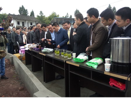 3月18日上午,達(dá)州市渠縣縣委書(shū)記王善平及四大班子主要成員、各鄉(xiāng)鎮(zhèn)主要領(lǐng)導(dǎo)在巖峰鎮(zhèn)鷂山村召開(kāi)了“產(chǎn)村一體”蠶桑專(zhuān)題現(xiàn)場(chǎng)會(huì),王善平一同參觀了標(biāo)準(zhǔn)化養(yǎng)蠶大棚、烘干設(shè)備及展示的桑椹酒、桑芽茶、桑茸菇等產(chǎn)品,并親口品嘗了桑芽茶,他點(diǎn)頭示意,連連稱贊口感好,并對(duì)分管農(nóng)業(yè)的副縣長(zhǎng)羅謙同志說(shuō)道:“要把桑芽茶抓好”。