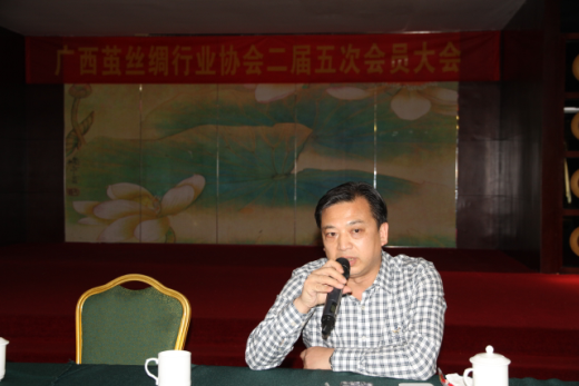 楊處長在會上對協(xié)會所取得的成績給予了充分的肯定,簡要分析了2014年我區(qū)繭絲綢行業(yè)的生產(chǎn)經(jīng)營狀況并總結了2014年繭絲辦的主要工作:一是繼續(xù)深入貫徹落實國家商務部等8部門《關于進一步促進繭絲綢行業(yè)健康發(fā)展的意見》的精神,加強行業(yè)宏觀指導,促進廣西繭絲綢業(yè)健康快速發(fā)展;二是頒布了《廣西繭絲綢業(yè)發(fā)展規(guī)劃(2014-2020)》;三是積極爭取國家和自治區(qū)各項扶持資金,支持廣西繭絲綢行業(yè)的快速發(fā)展;四是加強行業(yè)規(guī)劃管理工作,出臺2014年蠶繭收購指導價格。最后楊處長通報了自治區(qū)繭絲辦2015年工作重點:繼續(xù)組織實施廣西繭絲綢發(fā)展規(guī)劃,主動適應經(jīng)濟發(fā)展新常態(tài),調整產(chǎn)業(yè)結構,加強絲綢生產(chǎn)深加工,延長產(chǎn)業(yè)鏈,力爭在“十三五”期間開創(chuàng)廣西繭絲綢產(chǎn)業(yè)的新局面。