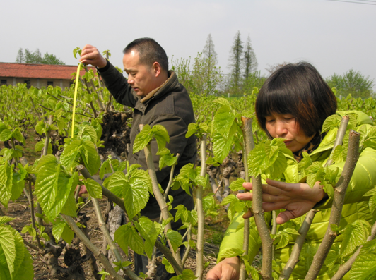 目前嘉興秀洲區(qū)桑樹長勢總的結(jié)論是略差于去年同期水平。頂芽開葉速度到本月8日已經(jīng)達到5.25葉,雖然比去年慢1.25葉,如算到4月9日的話,最多慢1葉,但比2013年快1葉;發(fā)芽率達到80.7%,高于常年同期水平,是近幾年最高的一年,主要是因為4月2日前氣溫一直較高,4月2日最高達到33.2℃,創(chuàng)歷史同期最高記錄,但最近幾天氣溫急轉(zhuǎn)直下,最低氣溫只有5~7℃,因此,近幾天開葉速度與生長速度明顯變慢。今年桑條的平均條長與桑條平均粗度(平均直徑)明顯好于去年同期水平,說明桑樹基礎(chǔ)好于去年同期水平,因此,今年春葉產(chǎn)量不會低于去年水平。