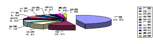 圖二 2014年各主要省市蠶繭產(chǎn)量占比情況