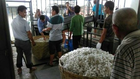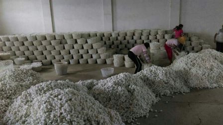 由于今年天氣好,桑葉質(zhì)量好,加上飼養(yǎng)管理到位,收成普遍較好,蠶繭質(zhì)量和產(chǎn)量均去年有所提高。據(jù)金蠶網(wǎng)工作人員現(xiàn)場(chǎng)了解到,收購(gòu)價(jià)格在1公斤39元左右。