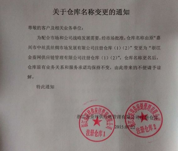 關(guān)于倉庫名稱變更的通知