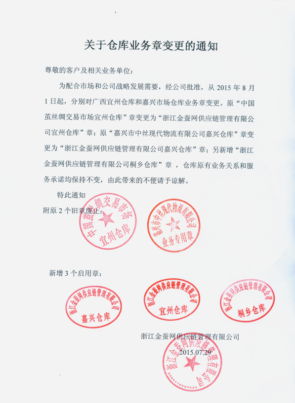 關(guān)于倉庫業(yè)務(wù)章變更的通知(2)