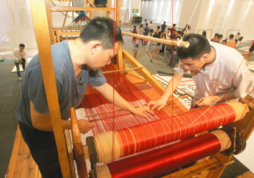 鐘秉章認(rèn)為,非遺產(chǎn)品是文化產(chǎn)品,應(yīng)該強(qiáng)調(diào)其文化的屬性,同時(shí)非遺產(chǎn)品又是商品,必須遵行現(xiàn)代市場(chǎng)規(guī)律。有獨(dú)到的文化,精到的技藝產(chǎn)品,再結(jié)合良好市場(chǎng)運(yùn)行,這樣才會(huì)有較好市場(chǎng)發(fā)展前景?!盀榱俗層袃汕Ф嗄隁v史的蜀錦技藝不失傳,我們從2002年就開(kāi)始搶救性地保護(hù)蜀錦,先后復(fù)原了10臺(tái)清代花樓蜀錦機(jī),培養(yǎng)了十幾位蜀錦手工織造學(xué)徒,建立了蜀錦非遺保護(hù)基地,請(qǐng)回了7位70多歲高齡的蜀錦老藝人,經(jīng)過(guò)幾年耐心細(xì)致地口傳身授,培養(yǎng)了十幾名平均年齡20多歲的學(xué)徒。除此之外,我們還在蜀江錦院成立工作室。這幾年是企業(yè)化運(yùn)作,蜀江錦院作為企業(yè),經(jīng)過(guò)十幾年努力,取得了階段性成績(jī)?!?/p>