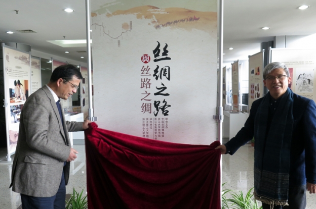 在致辭中,陳校長說:“浙江理工大學(xué)緣起蠶學(xué)館,從絲綢工學(xué)院到今天的浙江理工大學(xué),我校因蠶而生,因絲為信,因此‘絲綢之路與絲路之綢’在我們學(xué)校開展,有非常重要的意義。我希望通過這樣的展覽,讓當(dāng)代大學(xué)生全面了解絲綢之路燦爛的文化,并投入到‘一帶一路’的建設(shè)中去?!?/p>