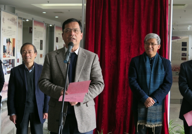 開幕式由校圖書館館長胡天生主持,中國絲綢博物館館長趙豐、社教部主任俞敏敏、浙江理工大學(xué)副校長陳建勇、材料與紡織學(xué)院書記祝成炎、材料與紡織學(xué)院副書記馮飛蕓、校保衛(wèi)處副處長汪小明等人出席了開幕式。陳建勇與趙豐先后在開幕式上致辭。