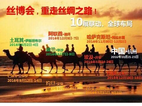 2016年6月-12月期間,分別在土耳其、波蘭、埃及、南非、約旦、巴西、中國(guó)、哈薩克斯坦、阿聯(lián)酋、印度等十國(guó)舉辦中國(guó)絲綢博覽會(huì),同期組織中外企業(yè)開(kāi)展相關(guān)經(jīng)貿(mào)洽談交流活動(dòng)?;顒?dòng)安排日程表詳見(jiàn)附件1。