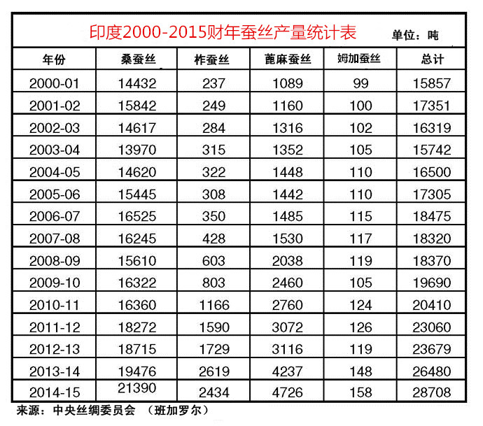2000-2015財年印度蠶絲產(chǎn)量統(tǒng)計