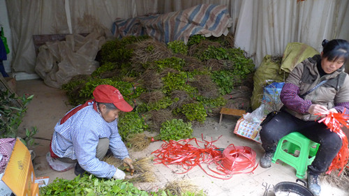 據(jù)店里老板透露,今年桑樹苗的出售情況整體和去年相當(dāng),年初的時(shí)候價(jià)格略高,高峰期時(shí)一天最多能賣出近八萬株桑苗。因?yàn)槟壳按蠖鄶?shù)農(nóng)民已經(jīng)完成了桑園擴(kuò)建 目標(biāo),僅有部分年初還忙不過來的農(nóng)民在繼續(xù)采購桑樹苗,現(xiàn)在每天最多也就能賣出一萬多株。在談到今年農(nóng)民養(yǎng)蠶形勢時(shí),店里老板向筆者說出了自己的看法: “雖然2015年春繭價(jià)格不及2014年,但從目前桑苗的出售情況看,今年農(nóng)民種桑養(yǎng)蠶的熱情仍舊不減。大多數(shù)農(nóng)民選擇養(yǎng)蠶,主要是離家近可以照顧家里, 養(yǎng)蠶季節(jié)過后還可以做其他農(nóng)活。”