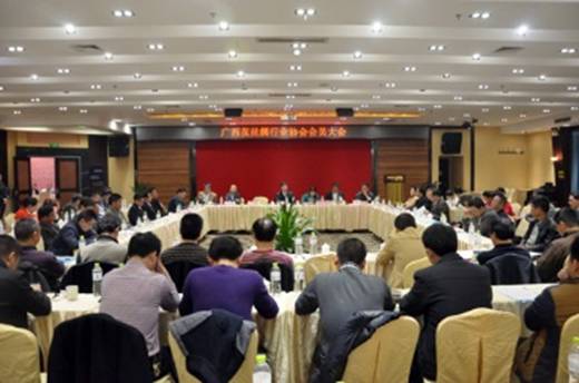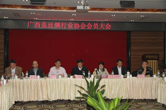 2016年3月18日,廣西繭絲綢行業(yè)協(xié)會(huì)會(huì)員大會(huì)在南寧隆重召開。本次大會(huì)主要議程是換屆選舉,同時(shí)就當(dāng)前市場(chǎng)行情走勢(shì)進(jìn)行交流和分析研判。80多家會(huì)員單位領(lǐng)導(dǎo)參加會(huì)議,自治區(qū)繭絲辦田寧主任和工信委綜合處石紅艷處長(zhǎng)到會(huì)指導(dǎo)。