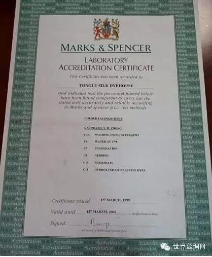 二是受到價(jià)格成本的控制,染色還是停留在色牢度達(dá)不到歐洲的標(biāo)準(zhǔn)的問(wèn)題上。我認(rèn)為染色工藝技術(shù)要提高,工廠應(yīng)該提高產(chǎn)品品質(zhì)而不是為了賺錢(qián)而賺錢(qián)。我們?nèi)菊麖S為什么之前生意好?全世界六大品牌染色全部指定我們做,所以我可以染一年3500噸的量。我們憑借瑪莎的色牢度測(cè)驗(yàn)證書(shū),任何一個(gè)世界品牌商,看了之后,肯定找我們做。絲綢行業(yè)應(yīng)該在每個(gè)環(huán)節(jié)上糾正達(dá)到自己的標(biāo)準(zhǔn)。