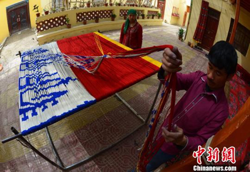 掛牌保護(hù)中心的和田市吉亞麗人艾特萊斯絲綢有限責(zé)任公司堅(jiān)守著古老手工編織艾德萊斯絲綢的技藝,抽絲、染色、編織都是純手工制作,因此帶動(dòng)了大約近百人就業(yè)。其負(fù)責(zé)人伊力亞爾·伊敏哈孜告訴記者,這些村民每織一匹絲綢(6米長(zhǎng)、40厘米寬)可獲得35元至50元不等的酬勞,像吾斯曼·塔熱老人每個(gè)月也有上千元的收入。